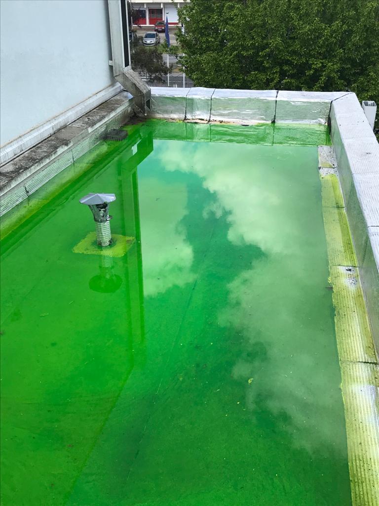 une mise en eau coloré est réalisé afin de trouver la source de la fuite.